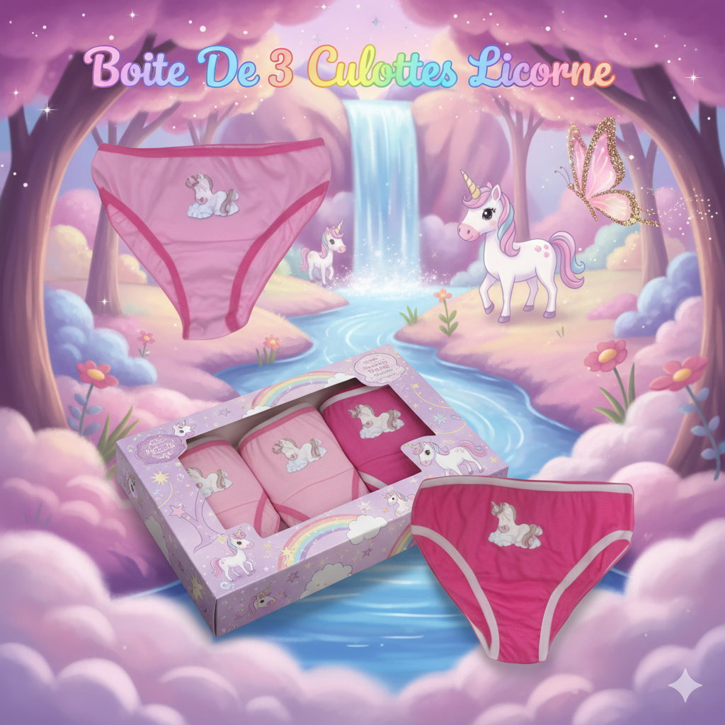 Motif Licorne : Chaque culotte présente un adorable motif de licorne, ce qui les rend attrayantes pour les enfants. La licorne est représentée de manière douce et fantaisiste.